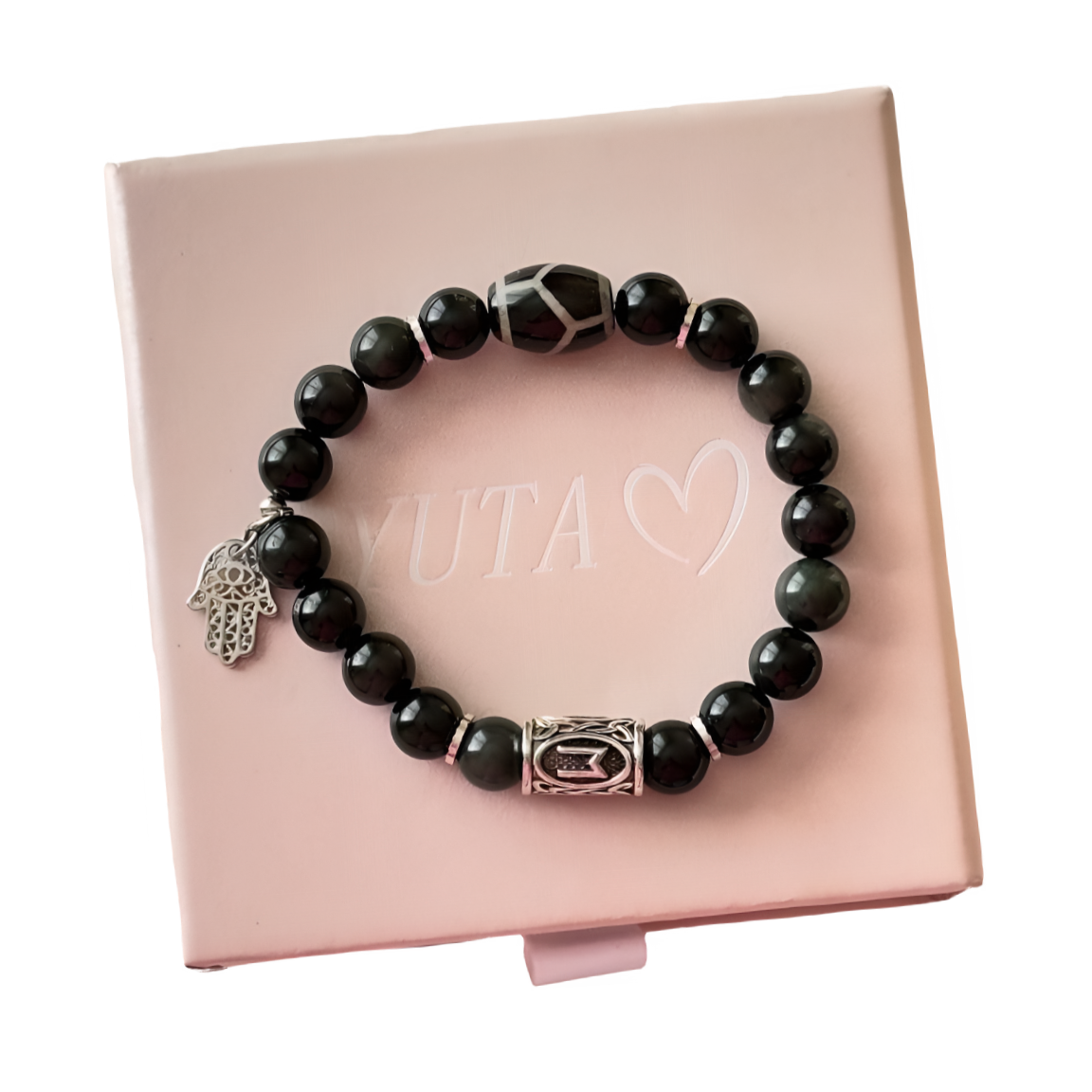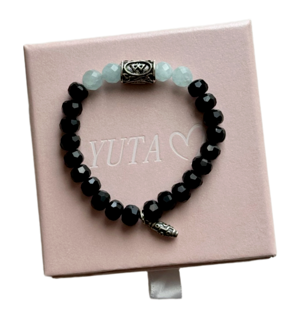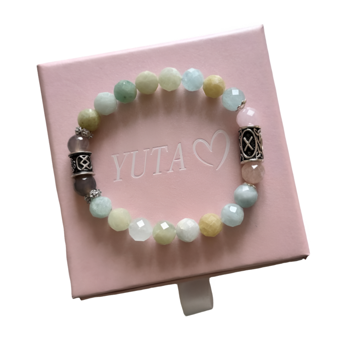 В браслете через БЕРИЛЛ И РУНЫ мягко сочетаются цвета и энергии Солнца и Луны.